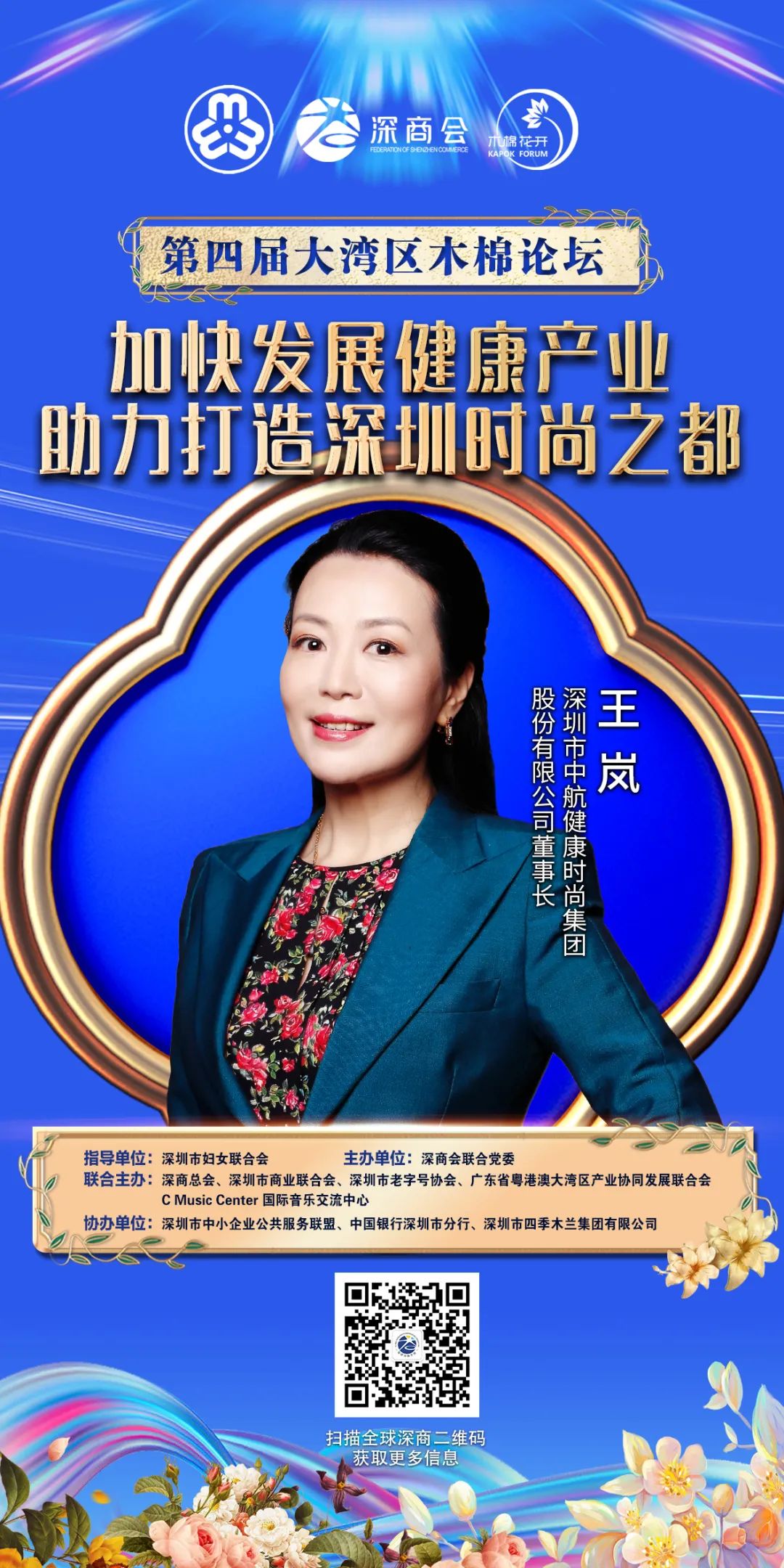 在第四屆大灣區木棉論壇上,王嵐分享的主題是《加快發展健康產業,助力打造深圳時尚之都》,她認為健康是每一個人永恒的追求,中航傳播的是一個全面健康的生活方式,用科技和專業帶給人們健康和快樂的生活。