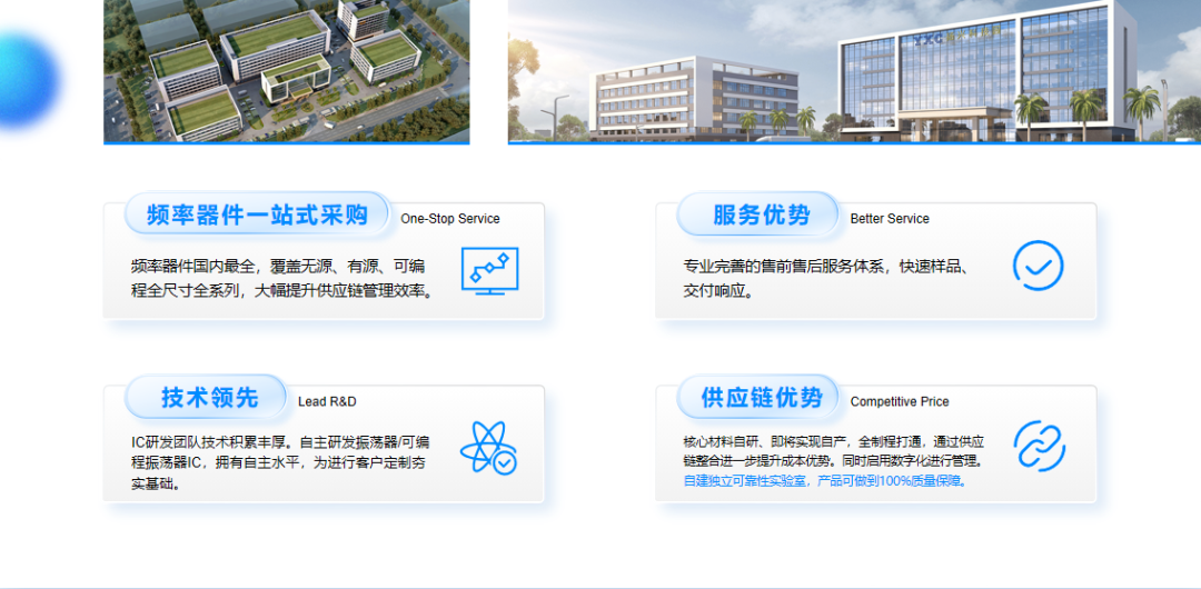 近年來,公司不斷加大對石英晶振的研發(fā)投入,匯聚了一批來自海內(nèi)外晶振行業(yè)的高端研發(fā)人才,先后成立了臺灣半導(dǎo)體研發(fā)中心和華南頻率器件生產(chǎn)中心,成功研發(fā)并量產(chǎn)了國內(nèi)領(lǐng)先的可編程頻率芯片,并斬獲專利及榮譽百余項,通過國家級專精特新小巨人認證。 YXC秉承著"賦予科技生命力,攜手伙伴共富足"的使命,堅持以科技創(chuàng)新為基礎(chǔ),為全球客戶提供卓越的產(chǎn)品和服務(wù),力爭成為國際一流的時鐘頻率器件服務(wù)商。