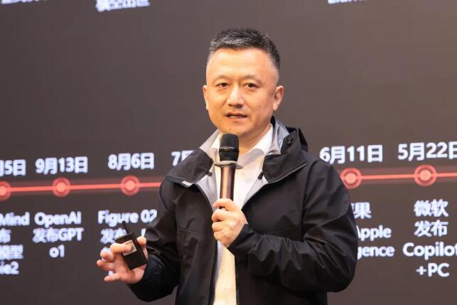 周劍分享了AI在機器人領域的應用成果。他提到,全球人形機器人走進汽車工廠,開啟萬億級市場。工業制造有望成為人形機器人首個大規模應用的領域。人形機器人技術加速演進,已成為科技競爭的新高地、經濟發展的新引擎,是發展新質生產力的前瞻領域。形機器人是緩解制造業人力供需矛盾的關鍵一環,未來,人形機器人將和傳統自動化設備協作作業,以解決復雜場景的柔性無人化,將重新定義AI時代的工人。優必選作為人形機器人領域的代表性企業,其自主研發的人形機器人全棧式技術確實取得了顯著成果,并且在有效專利數量上位居全球第一。